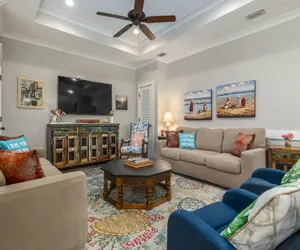 Step inside to an open, sunlit living space decorated in calming beach-inspired tones. Tray ceilings, warm textures, and comfortable furnishings create an atmosphere that instantly puts you in vacation mode. It’s an ideal spot to unwind after a day at the beach or enjoy a slow morning before exploring the island.