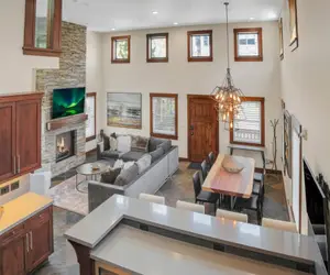 Built in 2009 with luxurious finishes, The Peak at Town Lift boasts vaulted ceilings, hardwood and granite throughout, and a chef’s kitchen equipped with a Wolf gas range, Sub-Zero refrigerator, wine cooler, and breakfast bar. The dining area comfortably seats eight, perfect for gathering after a day on the slopes.