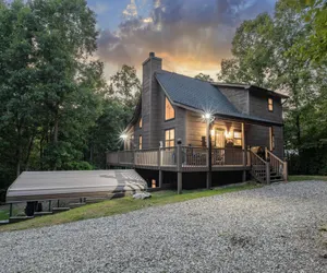 Nestled between two of the most popular North Georgia locations, where you can take a day trip to Blue Ridge or Helen, this charming 3-bedroom, 3-bathroom cabin offers the perfect blend of rustic charm and modern comfort. The cozy living area is ideal for curling up with a good book or enjoying a movie night. The fully equipped kitchen and dining space make meal prep and family gatherings a breeze. The designated office area allows you to still get things done while away. Also, enjoy the home's zero gravity massage chair, to fully unwind after a day's adventures!