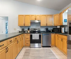 • Fully Stocked Kitchen: Whip up delicious meals with ease in the fully equipped kitchen, featuring all the cookware, utensils, and appliances you'll need.