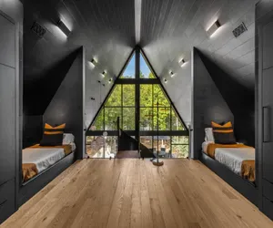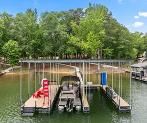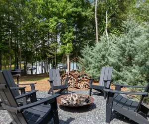 Featured in Dwell Magazine, this stylish lakefront retreat blends bold architecture with serene views of Lake Hartwell. Thoughtfully designed with a sunken conversation pit, open-concept living, and curated interiors, it's the perfect escape for couples, families, and design lovers. Bring the family or friends and spend time on the water, on the pontoon boat that is included in the stay. Centrally located near downtown and the marina, with direct lake access, outdoor dining, and peaceful wooded surroundings.