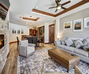 Two-Bedroom Condominium Enjoy approximately 1,200 square feet of comfort with a guaranteed slope-side view. This spacious unit features: Living Area: Cozy sitting space with a gas fireplace. Dining Area: Perfect for family meals Kitchen: Fully equipped with stainless steel appliances. Bedrooms: Master bedroom with one king bed. Second bedroom with one queen bed Bathrooms: Two full bathrooms Additional Sleeping: Sleeper sofa, accommodating up to six guests.