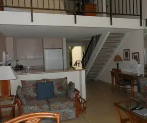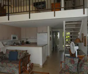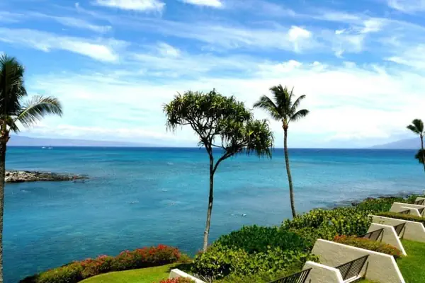 Unit C27 is a spacious oceanfront 2-bedroom, 2-bath loft-style condo (958 sq ft interior) with a 112 sq ft lanai featuring a solar shade—perfect for shaded enjoyment of panoramic Pacific views, whale watching, and vibrant sunsets. Equipped with full-unit air conditioning and ceiling fans, it offers a king bed in the loft (shower bath), twin beds in the enclosed bedroom (tub/shower bath), queen hide-a-bed sofa (sleeps 6 comfortably), and at least two TVs. Ideal for families or groups seeking prime Maui oceanfront living steps from snorkeling coves, resort pools, and renowned Napili Bay Beach.