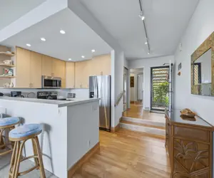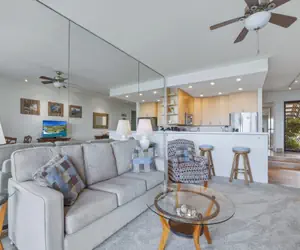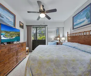 Unit B3 at Napili Point Resort is a 1-bedroom, 1-bathroom point oceanfront condo in Maui, Hawaii, with 720 square feet of interior space plus a 104-square-foot lanai. It sleeps up to four people with a king bed in the bedroom and a queen hide-a-bed sofa in the living area, and includes ceiling fans, two TVs, and a shower (no tub). The prime point oceanfront location offers direct views ideal for turtle spotting and sunsets in the relaxed Napili area.