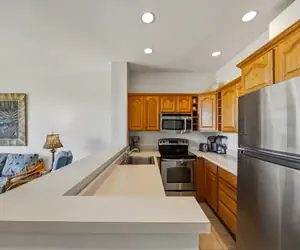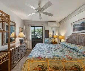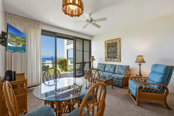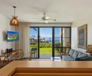 Unit B25 at Napili Point Resort is a 1-bedroom, 1-bathroom oceanfront condo in Maui, Hawaii, with 720 square feet of interior space plus an 86-square-foot lanai. It sleeps up to four people with a king bed in the bedroom and a queen hide-a-bed sofa in the living area, and includes air conditioning, ceiling fans, two TVs, and a shower (no tub). The oceanfront location offers direct views ideal for turtle spotting and sunsets in the relaxed Napili area.