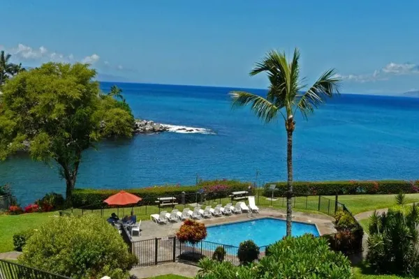 Unit C38 is a spacious ocean-view 2-bedroom, 2-bath loft-style condo (958 sq ft interior, 1,059 sq ft total) with a 104-112 sq ft lanai featuring a solar sun shade—perfect for shaded enjoyment of panoramic Pacific views, whale watching, and vibrant sunsets. Equipped with full-unit air conditioning and ceiling fans, it offers a king bed in the loft, queen bed in the enclosed bedroom, queen hide-a-bed sofa (sleeps 6 comfortably), and two TVs. Both bathrooms feature showers only. Ideal for families or groups seeking elevated Maui serenity steps from snorkeling coves, resort pools, and renowned Napili Bay Beach.