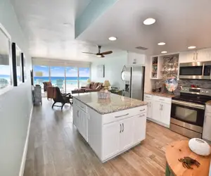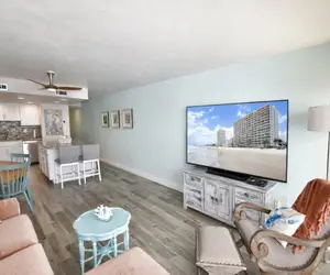 DIRECT BEACH ACCESS The Amazing, Oceanfront View of the Atlantic from the balcony of our one-bedroom condo is Priceless! These condos come with a fully equipped kitchen for you to prepare meals when you don’t feel like venturing out on the town to try one of our local restaurants. The large living area boasts views for miles and provides seating for all guests to enjoy time together while on vacation. The bedroom features a King Bed and offers a full bathroom with a walk-in shower. There is a bathroom located along the hallway with a shower stall. Additional sleeping arrangements include a murphy bed in the living area(not pictured yet) and a queen sleeper sofa. There is a washer and dryer for your laundering needs located in the hallway as well. The living area and bedroom have TVs for your viewing pleasure. These living spaces are set up to be a home away from home while enjoying the Beach!
