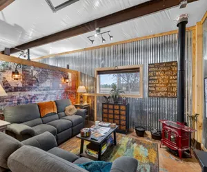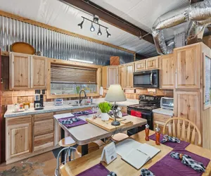 This charming and quaint studio enjoys a welcoming living area with a smart TV with streaming services and a wood stove to keep you nice and toasty during the winter months, a full kitchen complete with all the major appliances to show off your culinary skills, 3 dining tables a full bathroom, and free WiFi. You will also enjoy a screened 30x30 patio. In addition, you can lift up the garage door and be connected to everything. Indoor outdoor living surrounded by peace.