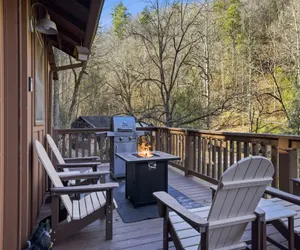 Tucked away in the scenic Shagbark Gated Resort of Sevierville, Creekbend is a charming 3-bedroom, 2-bath cabin that offers the perfect Smoky Mountain escape for families, couples, or a small group, comfortably sleeping up to six guests. Surrounded by peaceful mountain scenery and nestled alongside a tranquil creek, this cabin provides a relaxing setting where the sounds of flowing water add to the serenity of your stay.