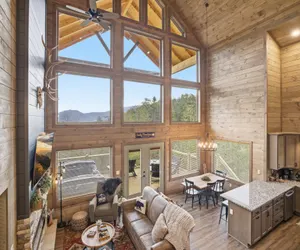 Three Pines is a brand-new Wears Valley retreat designed for couples, friends, or a small family getaway—close to the action in Gatlinburg, Pigeon Forge, and Sevierville, yet tucked away where you can truly relax. From the moment you arrive, you’ll feel the difference: warm wood finishes, soaring ceilings, and big windows that bring the Smoky Mountain scenery right into the heart of the cabin.