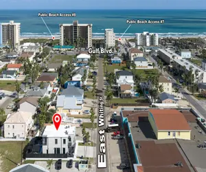 Welcome to this modern coastal retreat at 102A E. Whiting in South Padre Island, designed for comfort, style, and memorable group getaways. This spacious 4-bedroom, 3.5-bath home features an open-concept layout with upscale finishes, abundant natural light, and thoughtfully curated décor throughout. The bright living area flows seamlessly into a fully equipped kitchen with generous counter space and island seating, perfect for gathering after a day at the beach.
