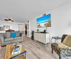 You are within walking distance of shopping, restaurants and less than a mile from Big Kahuna's Water and Adventure Park. Walk just steps to the beach. No streets to cross to get to the private beach or the seasonally heated pool. From this lovely complex, you'll experience the sights and sounds of the ocean, watch a sunrise or sunset over the water or the sail boats and fishing boats go by.