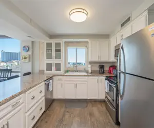 Beautifully remodeled three-bedroom unit in Tower III that is top of the line. Unit 3051 has a King in the Master bedroom and Two Queens in the first guest bedrooms one queen in the second guest bedroom. Flat screen TVs throughout. Washer and dryer in unit for guests' convenience and well-equipped kitchen for the most avid of cooks. Unit 3051 is spacious with nice open balcony so guests can spread out and relax. You will want to return year after year. Visit Crab Island, take in our famous sunsets with an amazing sunset cruise or play with the dolphins in the East Pass.