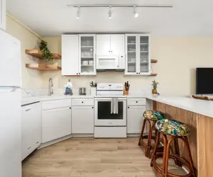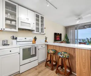 The open-concept kitchen invites connection and comfort, featuring gorgeous quartz countertops, brand-new cabinetry, and a layout that makes it easy to cook, sip, and socialize all at once. Whether you’re preparing fresh island fruit in the morning or unwinding with sunset pupus, everything feels effortless here.