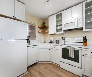 When it’s time to rest, retreat to the comfortable king-sized bed tucked behind the elegant shoji-style door design — a layout that allows the newly installed split AC system in the living room to efficiently cool the entire space, including the bedroom. Traveling with family or friends? The pull-out sofa makes this condo ideal for up to 4 guests.