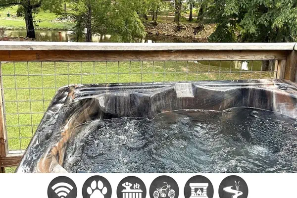 Step outside onto the peaceful deck and take in the soothing sights and sounds of the nearby river flowing below. This inviting outdoor space is the perfect place to relax and reconnect with nature while enjoying the fresh Smoky Mountain air. Unwind in the hot tub as you listen to the gentle sound of the water and take in the tranquil wooded surroundings.
