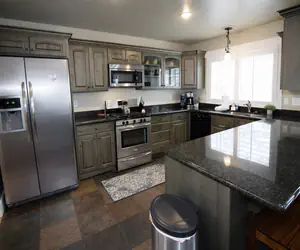 The spacious kitchen is a true highlight, offering plenty of room for cooking and gathering. Whether you’re preparing a quick breakfast before heading out or a full family dinner, you’ll appreciate the generous counter space, modern appliances, and open flow that keeps everyone connected. Just outside, the charcoal grill makes it easy to enjoy outdoor meals in the fresh mountain air.