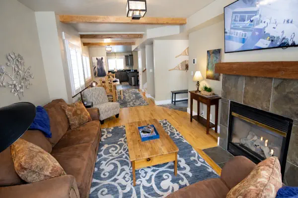 Step inside and feel instantly at home in the cozy living area, where a beautiful gas fireplace creates the perfect gathering space after a day on the slopes or trails. Comfortable seating, air conditioning for year-round comfort, and a thoughtfully designed layout make this home ideal for families, couples, or small groups.