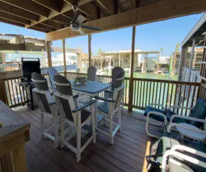 Port-O-Call Deckhouse is a two-level fishing house located directly on the channel in Port Isabel.