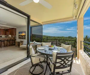 The spacious open living area flows seamlessly onto the private lanai, where you can enjoy morning coffee or sunsets while overlooking the pool and the sparkling Pacific beyond.