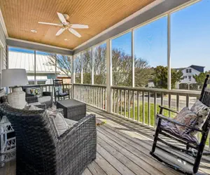 DETAILS: The perfect Pawleys Island getaway. This comfortable 5-bedroom, 4-bathroom beach home is ideally located on the north end of Pawleys Island, directly across from the beach access, making it easy to spend your days enjoying the sand and surf. This home offers the best of both worlds with beautiful views of the ocean on one side and the peaceful creek on the other. Covered and screened-in porches provide the perfect place to relax, catch the ocean breeze, and enjoy warm summer days with family and friends. The main floor features an open and inviting layout designed for gathering. The fully equipped kitchen flows seamlessly into the dining and living areas, creating a comfortable space for meals, conversation, and relaxing after a day at the beach. Also located on the main level is the primary bedroom with a queen bed and a private adjoining bathroom. Upstairs, the second floor offers four additional bedrooms and three bathrooms, providing plenty of space for larger families or groups. A secondary den with a TV gives guests another comfortable place to unwind, watch a movie, or let the kids enjoy their own space. Guests will also appreciate the convenience of both a traditional drip coffee maker and a Keurig, so you can start your mornings exactly the way you like.