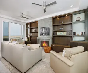 The airy living area with wall to wall windows and a small balcony offers stunning ocean views. The kitchen has state of the art appliances and a dining table to seat everyone. Down the hall, you will find all 3 bedrooms. The first bedroom has 2 full beds and an en suit bathroom that has double access from the hall as well. At the end of the hall is the master bedroom with a queen bed and an en suite bathroom. Next door is the last bedroom with another queen bed and a built in desk area.