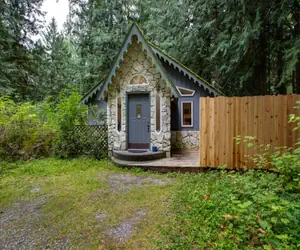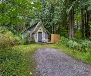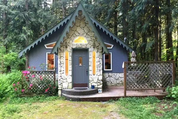 This little 1-story Enchanted Cottage is surrounded by trees and features: