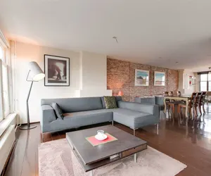 This is a brick building from 1914 that has been updated for the 21st Century. This property was home to renowned interior designer Robert Hutchinson for nearly 50 years. Mr. Hutchinson bought the property in 1961 and turned the first floor into his studio, while he lived upstairs. The second story, where you will be staying, has seen many designs over the years. Once, it was Chinese red, another time it was black. When it was featured in Architectural Digest in 1986, the walls and ceilings were tan and the flat was filled with tribal art from around the globe. There will be vintage magazines on site that show the projects of Mr. Hutchinson.