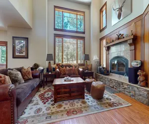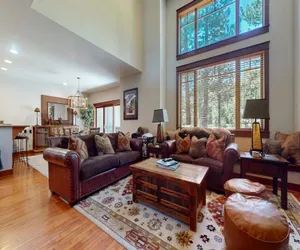 Fantastic luxury 4 bedroom, 3 1/2 bathroom townhome; sleeps up to 10 people. Located on the Sierra Star Golf Course, this home offers views of the 18 fairway, while being not too far from the center of Town for conveniences, or a short ride or walk to Eagle Lodge! This three story townhouse offers a private 2 car garage with EV charger, laundry room, large expansive deck with private hot tub and outdoor seating and BBQ grill. The floorplan allows social gatherings and is perfect for a large family gathering. On the entry level of the home is the living room with wood burning fireplace, large flatscreen TV with cable TV. A dining room that can seat up to 8 with additional bar seating for 4. The fully stocked gourmet kitchen offers stone counters, top of the line stainless appliances, a wine fridge and everything needed to prepare meals. The large deck offers a BBQ gas grill, private hot tub, outdoor dining seating and is located on the 18th fairway of the Sierra Star Golf Course. On this level the guest bedroom features a queen bed, with adjacent full bathroom with walk-in shower. On the next level is a kids haven featuring a full size bunk with twin on top, and a trundle twin below, TV and en-suite bathroom with tub/shower combo. On the third top level, the primary suite features a king bed, TV, walk-in closet and en-suite bathroom with double vanity, soaking tub and walk-in shower. The fourth guest bedroom also on this upper level has a queen bed, en-suite bathroom with shower. This unit also offers WiFi internet access, a two car garage (garage clearance 7' 5") a laundry room with washer / dryer so you can enjoy all the conveniences of home. Located on the green line shuttle route, it is a short walk to the shuttle stop with a quick ride into Town or to Eagle Lodge. This unit is pet friendly, One pet allowed, additional pets by approval only, please call. All guests receive complimentary full access to Snowcreek Athletic Club to enjoy facilities including indoor heated pool, steam/sauna, full fitness facility, yoga, Pilates and cycle studio and more. Guests will be provided two parking passes. If more parking is required than what is allotted, feel free to call our office for alternative options. Our calendar is updated in real time. (Property Certification #: TOML-CPAN-13707) Unit Code = TMB18