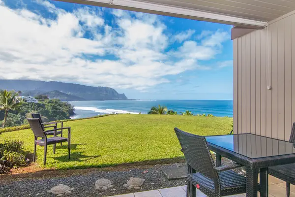From Pali Ke Kua #118, you can walk to the on-site restaurant. Golf and tennis are a short stroll away. Just out the sliding glass door is a paved beach trail leading to a white sand beach (Pictured Above) and a private recreation area. Pristine Hanalei Bay awaits you in just a 5-minute drive down the hill for surfing, sailing, fishing, boogie-boarding, or just plain relaxing at the beach.