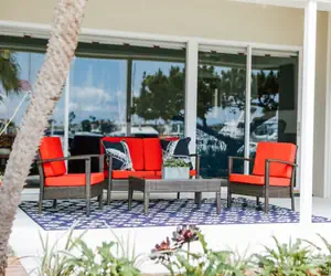 When you walk into the first level of the home you are welcomed by the newly remodeled kitchen with fresh white cabinets, stainless steel appliances and granite counter tops. There is an island with 4 bar stools perfect for a small lunch gathering in the kitchen or a larger dining table area next to the living room. The downstairs living room and dining area are a single space that is surrounded by floor to ceiling windows, so you can take in every view that Newport Harbor has to offer. Then walk out onto the large patio and enjoy the good life! This stunning front patio is fully equipped with comfortable lounging furniture and a stainless steel gas BBQ grill. It is the perfect spot to grill up some burgers and drink a cocktail while enjoying the sight of the boats cruising by.