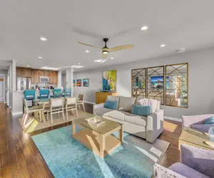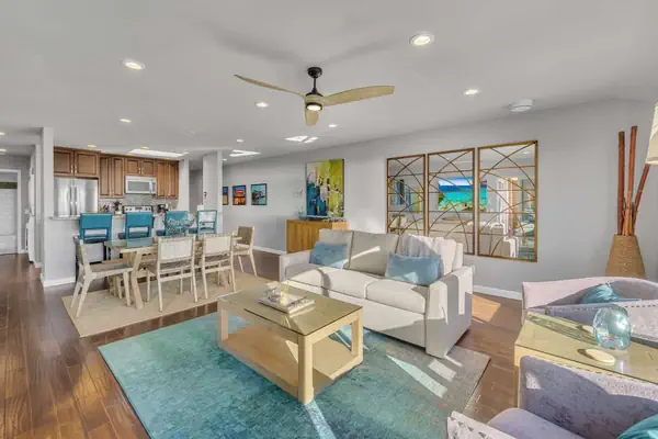 This 3 bedroom, 2 bath condo with panoramic ocean views is a gorgeous vacation home featuring hardwood floors, granite counter-tops, stainless steel appliances, and casual beach-style themed furnishings.