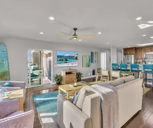 The location of this condo is truly in one of the premier spots on the entire Peninsula. You will have spectacular views of the Pacific Ocean, Newport Beach, Catalina Island, and the famous Balboa Pier from the balcony of your 3rd floor vacation property. You are so close to the water you will hear the waves crashing when you go to bed at night and wake up in the morning to a beautiful sunrise. The master bedroom has ocean views from the comfort of your California king-sized bed. The second bedroom features a queen-sized bed and the third bedroom is perfect for your children with 2 bunk beds and a trundle bed. The third bedroom also has a flat-screen TV. You also have access to a pull out sofa sleeper in the living room for additional family members or guests.