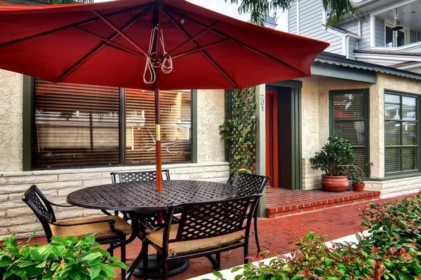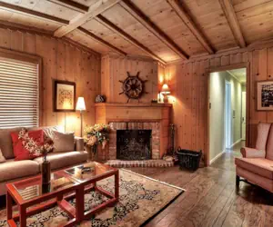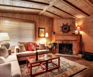 The front of this rustic cottage features a cozy outdoor patio complete with a gas BBQ and patio furniture where you can prepare your favorite outdoor meals or enjoy your morning coffee. The inside of this cottage has purposely been maintained in its original Balboa Island vintage style featuring a high-vaulted ceiling in the living room outlined with traditional wood planks. There is wood flooring throughout the cottage, a wood-burning fireplace, and 2 cozy sofas in the living area.