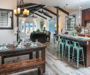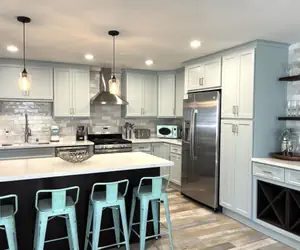 Relax in this beautiful home with an oversized front patio complete with an outdoor dining table and a shady market umbrella. There is patio furniture for outdoor lounging off the master bedroom and another bedroom on the 2nd floor as well. The home has a fully stocked kitchen with granite counters and a dining room table that sits 6. There are 4 kitchen counter bar seats. With beds for up to 10 people, this home can easily accommodate your whole family.