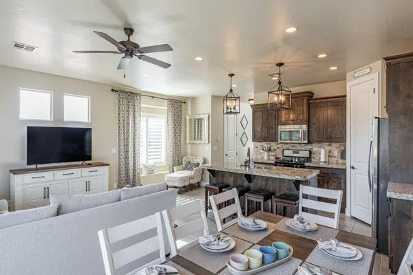 Whether you seek relaxation or plan to immerse yourself in the surrounding landscapes, find comfort in the contemporary-style bedrooms, on the partially covered outdoor patio, or spend quality time with family and friends in one of the two family rooms.