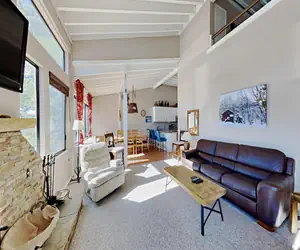 SLOPESIDE LOCATION! This spacious 3BR+OPEN loft/3BA home is an upstairs unit in the Townhomes at Property Manager - JUST STEPS TO MAMMOTH MOUNTAIN! This spacious 1,600-square-foot layout is perfect for families and groups of friends. Your mountain lovers will be THRILLED with the easy access to skiing, snowboarding, and mountain biking at Mammoth Mountain, 3 spas/pool/sauna, and free bus, PLUS the elevated guest benefits of an this Property Manager. Take the free (seasonal) Village Gondola to the Village at Mammoth for your morning coffee or lunch. Or relax in your home and brew your own coffee and cook meals with your friends and family. This fully furnished condo features a full kitchen, dining room, and living room, offering plenty of room to relax, renew, and reconnect. The loft bedroom is a spacious, full-size room and is visually private; however, noise may be heard from living room and kitchen.