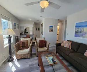 The condo is just a short drive or bike ride from Destin’s popular restaurants, shops, and the Harbor Boardwalk, yet far enough to offer a peaceful retreat. Free uncovered parking is available onsite.