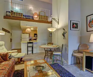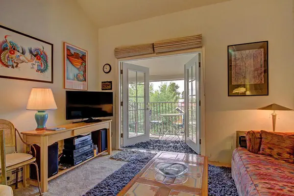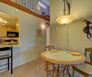 Cozy top-level condo with loft sleeps 6. Charming unit offers the convenience of a downtown location and peace-and-quiet in a top-level unit. Enjoy morning coffee and peak-a-boo views off the covered porch towards the ski slopes. Note: There is a spiral staircase leading to the loft, and 3 flights of stairs to the unit itself. 1 car per unit is allowed in an unassigned, paved and uncovered parking lot. Other unit amenities include onsite laundry facility.