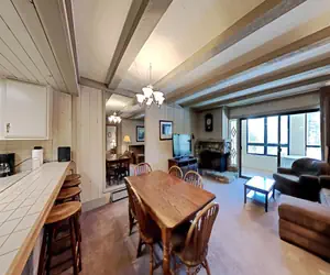 SLOPESIDE LOCATION! This well-appointed 2BR/2BA home is on the 2nd floor of the Lodge at Property Manager - JUST STEPS TO MAMMOTH MOUNTAIN! This spacious 1,200-square-foot home boasts AMAZING unobstructed views of Mammoth Mountain's Canyon Lodge and Lincoln Mountain. Your family and friends will LOVE the easy access to skiing, snowboarding, and mountain biking at Mammoth Mountain, 3 spas/pool/sauna, and free bus, PLUS the elevated guest benefits of an this Property Manager. Take the free (seasonal) Village Gondola to the Village at Mammoth for your morning coffee or lunch. Or relax in your home and brew your own coffee and cook meals with your friends and family. This fully furnished, elevator-accessible condo features a full kitchen, dining room, and living room, offering plenty of room to relax, renew, and reconnect.