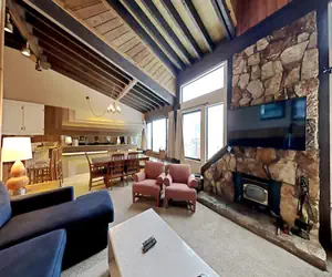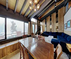 SLOPESIDE LOCATION! This spacious slopeside 4BR/3BA is an upstairs unit in the Townhomes at Property Manager - JUST STEPS TO MAMMOTH MOUNTAIN! There is ample bedding in this spacious 1,600-square-foot home for large parties. Your family and friends will LOVE the easy access to skiing, snowboarding, and mountain biking at Mammoth Mountain, 3 spas/pool/sauna, and free bus, PLUS the elevated guest benefits of an this Property Manager. Take the free (seasonal) Village Gondola to the Village at Mammoth for your morning coffee or lunch. Or relax in your home and brew your own coffee and cook meals with your friends and family. This fully furnished condo features a full kitchen, dining room, and living room, offering plenty of room to relax, renew, and reconnect.