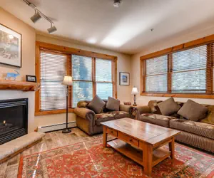 This condo has a spacious, mountain-inspired living room, a washer and dryer, a beautiful fireplace, and a back patio with private entrance. You will also enjoy the use of River Run's pool and hot tub facilities.