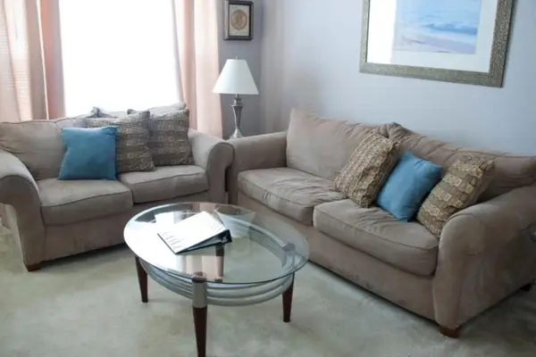Living Area – Comfortable sofas, TV, and DVD player. Great for relaxing after a fun day.