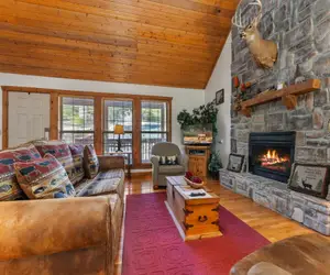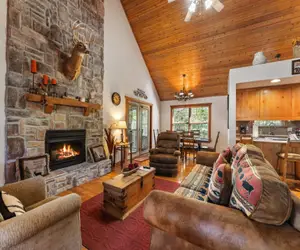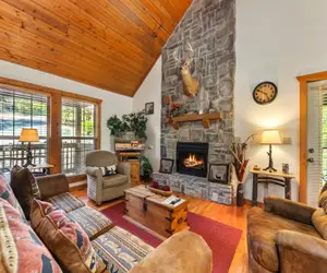 Our lodge is the perfect home away from home, with all the amenities you need for the perfect stay. Enjoy a fully equipped kitchen with all the necessary appliances, including a refrigerator, stove, microwave, and dishwasher. The living area features a cozy fireplace, comfortable seating, and a flat-screen television. Each bedroom comes with a king-sized bed and full bathroom. You'll also have access to our outdoor pools, tennis courts, catch and release pond, playgrounds and more!