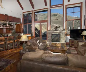 Lounge on large wrap-around heated decks with spectacular views of the mountains, around the outdoor barbecue, or in the oversized hot tub. No need to bicker over bedrooms! Two master suites are adorned with multiple shower heads & steam, and the 4 other bedrooms are just as comfortable. A cascading water fountain sets the mood in the living room. A gourmet kitchen with two ovens and dishwashers near a large dining room will make mealtime memorable! The perfect home for large family gatherings or corporate retreats. Parking for up to 4 cars will make trip planning convenient, and