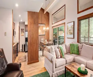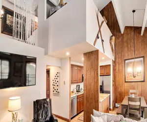 This vibrant Vantage Point condominium boasts high ceilings and myriad windows providing an abundance of light throughout. With a granite stoned hearth, soft earthy tones in the decor and a sense of cozy comfortability, it offers an appropriately warm welcome to those new to the Vail Valley. The photographic art reflects the mountain landscaping, with Golden Aspens in autumnal splendor inside all year round. The gas fireplace adds a heated glow for those chilly nights and the ample balcony extends an open invitation to take in stunning views of Vail Mountain by starlight.