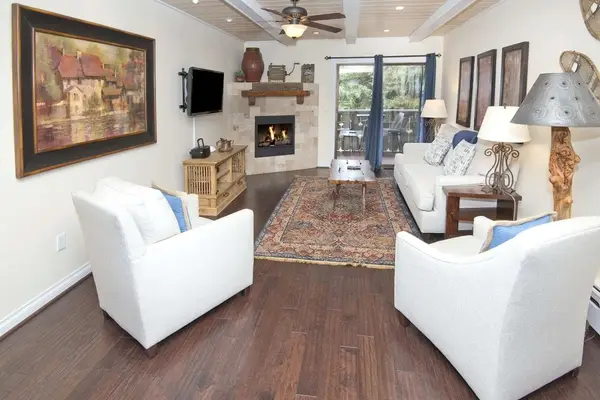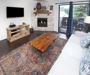 This stylishly sweet condominium in the very heart of Vail Village is a real find. It’s bright, cheery and fashionably furnished with a contemporarily classic finish and follow through. This polished gem shines from the rich earthy tones of the area rug that grounds the living room space to the lighter hues of the stone tiled hearth with inset gas fireplace. The tasteful artwork adds the perfect brush stroke of class. There is premium parking available in a secured/gated lot out front. Just a ‘bare foot trot’ to everything there is on offer here in the village.