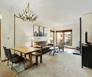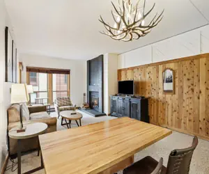 This 1 bedroom condo features a partial mountain view and cedar paneled walls, giving it a real rustic, mountain-contemporary style. The brick fireplace is best enjoyed when using the two mounted speakers it sits between. Including a full kitchen – the unit features a coil-top stove, microwave, toaster, dishwasher and refrigerator. The cozy bedroom houses a King size bed and a dramatically designed dark wooden bed frame.These ski in/ski out (hike in/out in the summer) accommodations are perfectly situated at the base of the Breckenridge Ski Resort’s QuickSilver chair lift and steps away from the Rocky Mountains’ most incredible and diverse terrain for skiers and riders of all levels. The Village is steps from historic Main Street, providing the best access to everything Breckenridge has to offer. Bordered by the White River National Forest, a serene Maggie pond, the trout filled Blue River and the world class ski runs of Breckenridge Resort, the Village has something for everyone, in every season!On-site parking is limited and paid on property at the rate of $55 a night. Parking rates are always subject to change. For confirmation on the rate during your stay, please contact our property directly. If parking is not available during your stay, our staff can direct you to overnight parking lots located off-property.Just outside the circle is a stop for Breckenridge's FREE shuttle bus system that can take you throughout town or connect you with FREE bus services to other area resorts such as Arapahoe Basin, Keystone, or Copper Mountain.In-Room Amenities: Linens provided Flat-screen TV Satellite/Cable High-speed wireless internet Washer and dryer on every floor HumidifierStay with us and find out why The Village at Breckenridge condominiums are a favorite year-round vacation destination that guests love coming back to, right in the heart of the action in Breckenridge!Make yourself at home here. Grab your slippers, cuddle up in front of the fire and enjoy the views. Choose one of our signature lodging properties and guarantee an elevated experience. When you stay at an official lodging property of Breckenridge Ski Resort, you’ll receive these exclusive perks.Resort Amenities: Outdoor plaza with fire pit Ski-in, Ski-out to Quicksilver Superchair Only one block from Main Street Breckenridge Laundry and dry cleaning services available Breck Sports ski and snowboard rental services located on property Business center In-lobby pick-up for children’s ski school 24 hour security and front desk, and on-call maintenance staff from 7am to 10pm daily. In-house lift tickets Ski-valet Ski school pick-up each morning from lobby Indoor/outdoor swimming pool & four outdoor hot tubs Fitness Center with cardio and weights, dry sauna and steam room On-site Movie Theater Game room with arcade games and poolWith 5 peaks, a real mountain town, and the highest chairlift in North America, Breck is the perfect getaway whether you're seeking adventure or looking to relax in a down-to-earth destination. Our locals will treat you like family and our town will embrace your true spirit. Welcome to Breck. How will you discover Breck? With so many events and fun things to do year-round, it's always a good time to visit Breckenridge.