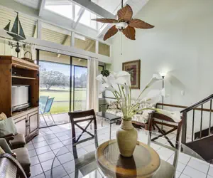 Lovely, spacious 2 bedroom+loft and 2 bathroom condo on Fazio golf course. This is a ground floor entry unit. Tastefully furnished. Screened-in lanai. Window air conditioning in both bedrooms. WIFI. Smart TV in living room and master bedroom. Ceramic tile flooring throughout condo. Laundry center for your added convenience. Well appointed kitchen. Wheelchair accessible and close proximity to pool and BBQ area. Free parking located right in front of the unit. Perfect place for your home away from home. All linens and towels are provided.