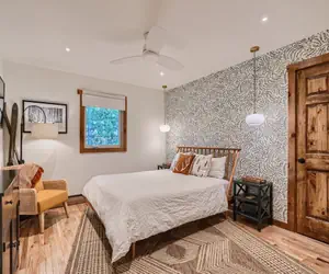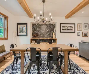 As you step inside, you'll be captivated by the chic and stylish ambiance created by the impeccable interior design. The spacious living area provides a comfortable haven to relax and unwind after a day of mountain adventures. Catch up on your favorite shows or stream movies on the TV with Roku access, ensuring endless entertainment options for your downtime.